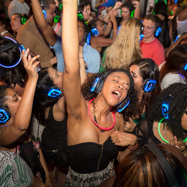 Why would someone want to party with headphones on? These aren’t “just some” headphones; they are Quiet Events® headphones. There are many benefits to participating in one of these silent disco parties:
