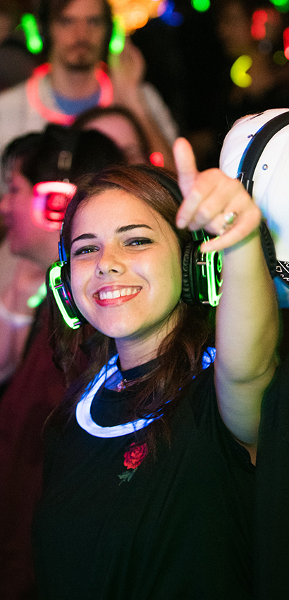 Rent headphones for just a few dollars each to create an event that everyone will be talking about the rest of the year.​​