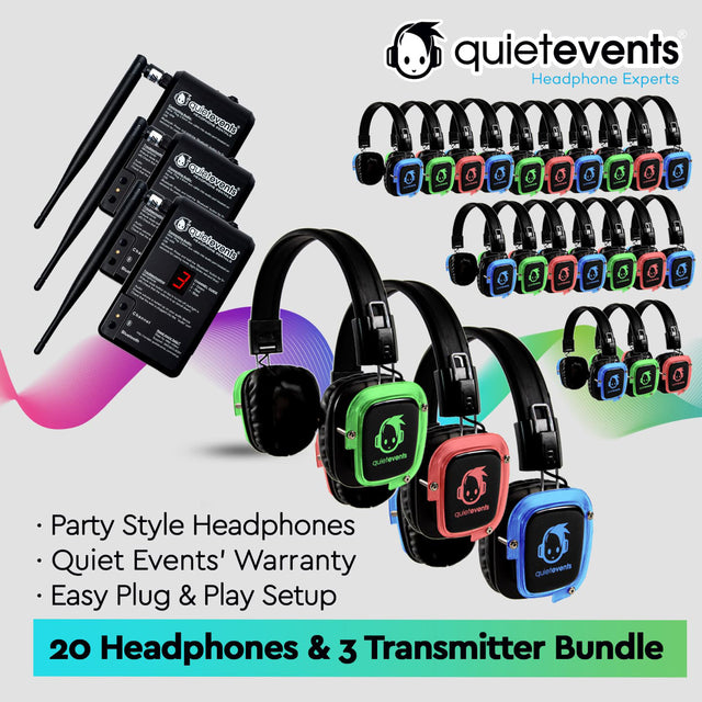 Pulse Party Bundle - 20 Headphones + 3 Transmitters Silent Disco Bundle (Pulse Party 3CH)
